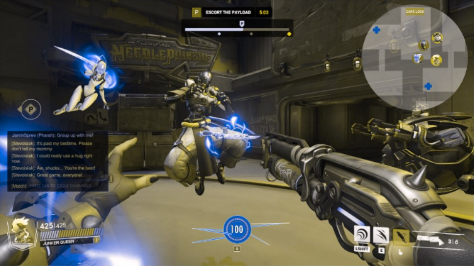 As seen in the left image (Apex Legends), the buttons to invite friends are very clear. I felt that this design was very easy to understand for players of all levels and wanted to incorporate it in my iterated frames. Similarly, the image on the right shows the minimap function in Valorant. This allows players to see where they are in the game at all times, and I felt that for Overwatch 2, this would be useful especially for newer players.